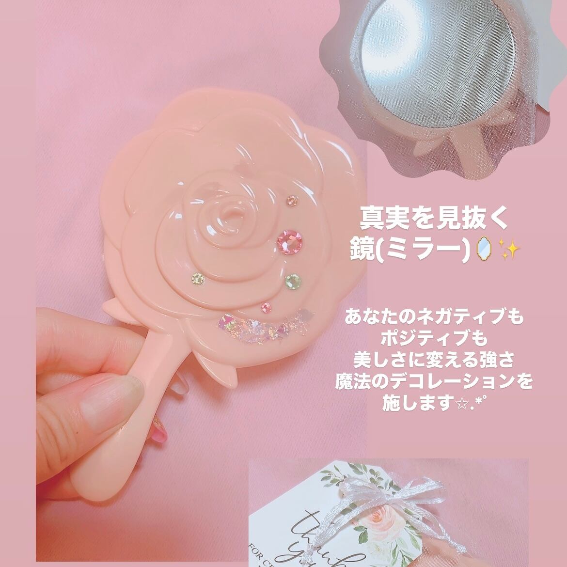 スワロフスキーの輝きと、薔薇の手鏡。